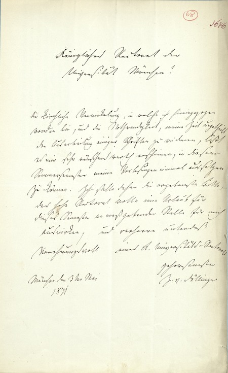 Ignaz von Döllinger an Rektorat, 3. Mai 1871